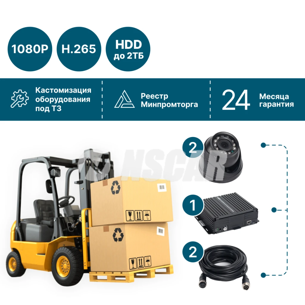 Комплект NSCAR GT201 с 2 HD-камерами и записью на HDD до 2 ТБ — надёжное решение для видеонаблюдения в грузовом транспорте.